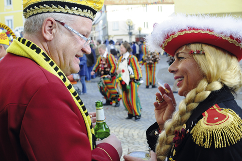 Und heute? Regen sich viele Bürger eben wieder auf, weil Zehntausende junger Leute Fasnet feiern, bis die Wände wackeln, sich nicht scheren um Tradition oder närrisches Regelwerk. Je jünger die Narren, haben die Meinungsforscher in Allensbach herausgefunden, desto aktiver sind sie. Jeder dritte Bundesbürger unter 40 Jahren ist so heute an den närrischen Tagen unterwegs. Statt im großen Saal aber feiert diese Generation lieber auf der Straße, in kleinen Kneipen, Pubs oder Jugendkellern, spontan und ungezwungen und, wenn immer möglich, zum Nulltarif. Die neue Fastnacht der Jugend hat ihr eigenes Gesicht – und eine alte Tradition. Denn was Teens und Twens heute vielerorts feiern, kritisch beäugt von den etablierten Narren und Ordnungsbehörden, ist die Fasnet des Volkes. Jene Form des Festes, die ihnen die Väter des organisierten Karnevals einst mit der Erfindung von Karnevalssitzungen und närrischen Umzügen genommen hatten. In bis dahin kaum gekannter Eintracht hatten sich Anfang des 19. Jahrhunderts Kaufleute, Bildungsbürger und Intellektuelle zusammengefunden, um mit Zug und Sitzung dem bis dahin ungestümen und ge-wöhnlich unorganisierten Treiben erste Fesseln anzulegen. Zwar fanden schon vorher immer wieder närrische Umzüge und karnevalistische Saalveranstaltungen statt, vor allem bei Hofe, so radikal wie Köln aber baute keine andere europäische Stadt die Fastnacht um. Was dort 1823 aus der Taufe gehoben wurde, war eine Art närrischer Blaupause. Ein Modell bürgerlicher Lebensfreude, das schnell Schule machte – auch in der schwäbisch-alemannischen Fastnacht, wo man die traditionellen Maskenkleider ablegte und statt dessen Prinz Karneval huldigte. Schon der Name des ersten Kölner Vereins war Programm, nannte sich die Gruppierung doch nicht wie heute „Festkomitee“, sondern „Festordnendes Komitee“. Nicht um die Feier ging es den Organisatoren, sondern um Ordnung, um die Kontrolle über ein Volksfest.