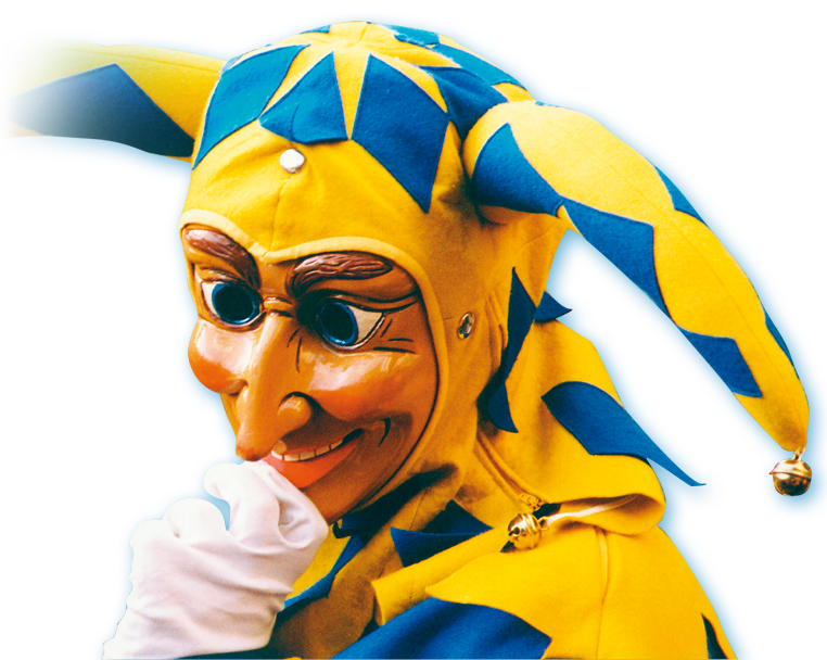 Dass hinter dem Knollengesicht kulturgeschichtlich eine venezianische Maske steckt, ahnt heute kaum einer der Betrachter. Wer sich freilich näher mit der Kulturgeschichte der Commedia dell’Arte beschäftigt, wer schaut, wie in ganz Europa zu Fastnacht verschiedenste Maskengestalten unterwegs sind, die alle einmal auch als Bühnenfiguren von sich reden machten, erkennt die Wechselwirkungen zwischen Bühne und Brauch. So wie heute Masken aus Science-Fiction-Filmen und Gruselstreifen das Halloween-Fest und viele neue Nikolausbräuche beleben, inspirierten die Lustigmacher italienischer Wanderbühnen eben einst die Narren. Commedia dell’Arte Die italienische Volkskomödie bestand in der Regel aus einem festen Handlungsgerüst, das den Schauspielern viel Raum zur Improvisation ließ. Stegreif-Theater nannte man es deshalb auch oft. Thema war fast immer die Liebe zwischen Männern und Frauen, die zu immer neuen Komplikationen und Verwirrspielen führte. Ihre Dynamik bezogen die Stücke zudem aus den Gegensätzen ihrer Bühnentypen. So spielten Jung neben Alt, Geizige neben Verschwendern, Pedanten neben Lebemännern, Edelleute neben Bauern, Herren neben Dienern. Zu den ersten bekannten Akteuren der Commedia dell’Arte gehörte der aus Padua stammende Schauspieler und Sänger Angelo Beolco (1502–1542), der mit seiner Truppe sowohl auf Jahrmärkten als auch am Hof des Herzogs von Mantua gastierte. Die Diener und Bauern in seinen Stücken ließ er bergamaskisch oder paduanisch reden, ihre Herren venezianisch oder bolognesisch. Zu den Publikumslieblingen der Commedia dell’Arte zählten gewöhnlich die Narren, die in Gestalt bäuerlicher Diener von sich reden machten – so wie der Zanni, der als Fastnachtsnarr noch heute in Norditalien anzutreffen ist. Sein Name leitete sich von Giovanni ab. Jenem damals weitverbreiteten Allerweltsnamen Hans, den auch die ersten deutschen Narrenfiguren wie der Hanswurst trugen. Lumpen- oder Lappenkostüme gehörten zu ihrer Grundausstattung, dazu eine Halbmaske aus Holz, später aus Leder mit Bart und Haar. Unmäßig, gefräßig, versoffen, treulos und feige verkörperte der Zanni die typischen Eigenschaften des Narren, was ihm beim Publikum, das seinen einfachen Mutterwitz liebte, viel Sympathien einbrachte.
